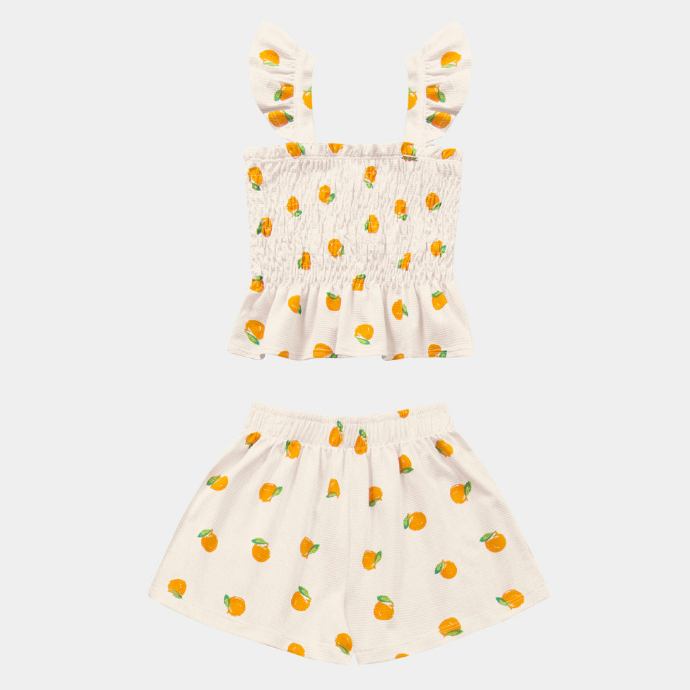 🍊 Conjunto Infantil Feminino – Estampa de Tangerinas com Muito Estilo!