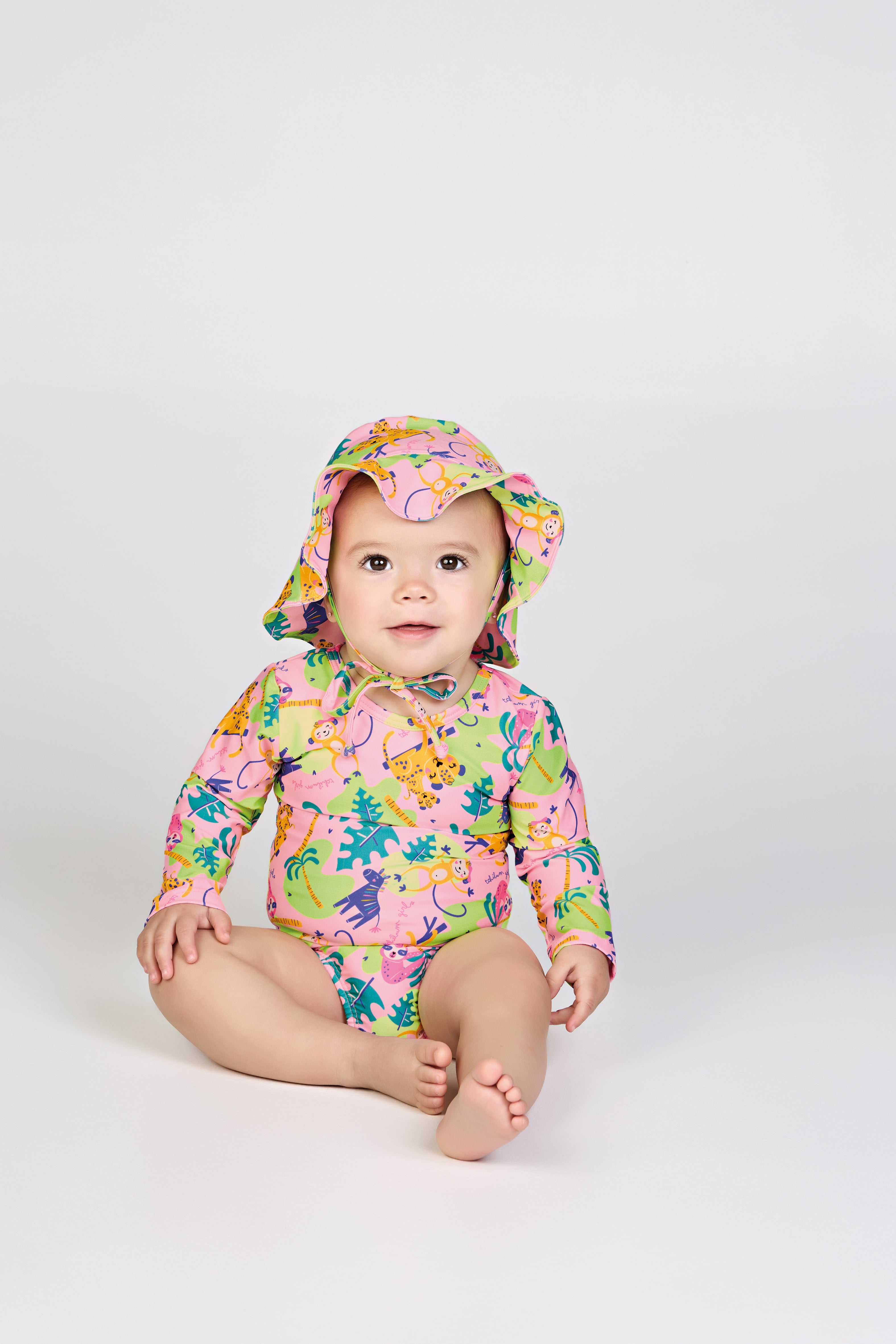 Deixe sua pequena brilhar com charme e proteção! O conjunto Tchibum Angel é perfeito para curtir o verão com conforto, segurança e muito estilo. Ideal para praia, piscina ou passeios ao ar livre.