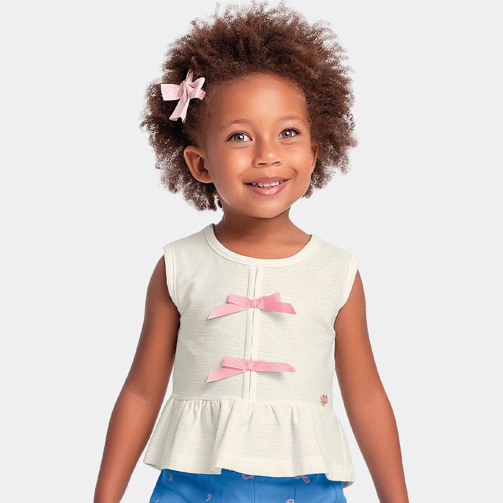 Um charme a mais para o guarda-roupa da sua pequena! A regata infantil em malha da Fakini é leve, fresquinha e cheia de delicadeza, ideal para os dias mais quentes.